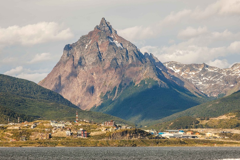 ▲ '세상의 끝' 우수아이아 항구와 타운, 그리고 그 뒤에 펼쳐진 마르티알 산