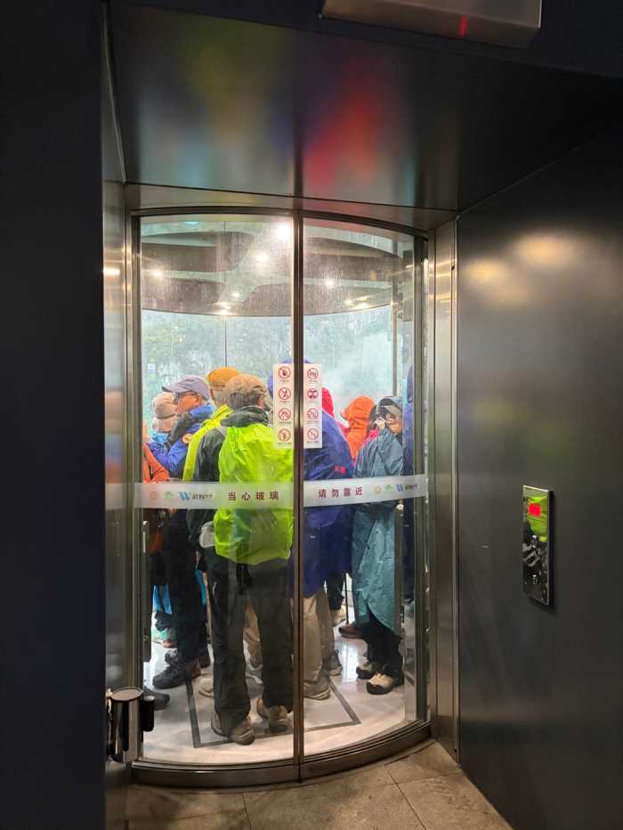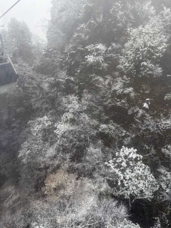운용지봉 트레킹 후 은시대협곡으로 이동합니다. 케이블카를 타고 이동하는 중 눈이 내렸습니다.