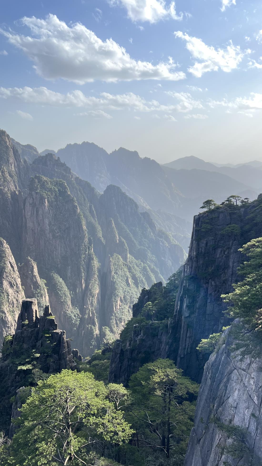 2025년 4월 12일 날씨는 대체로 좋았다. 황산 트레킹 중 서해대협곡을 모노레일로 순식간에 내려가 (가이드님의 팁으로 젤 앞에 탔더니, 그 스릴이 대단하였다) 거기서 트레킹 하면서 올라온 구간이 가장 멋졌다 중국 특유의 산세가 감탄을 불러왔다. 날이 좋아 황산의 일출도 볼수 있었고 운이 좋았다.