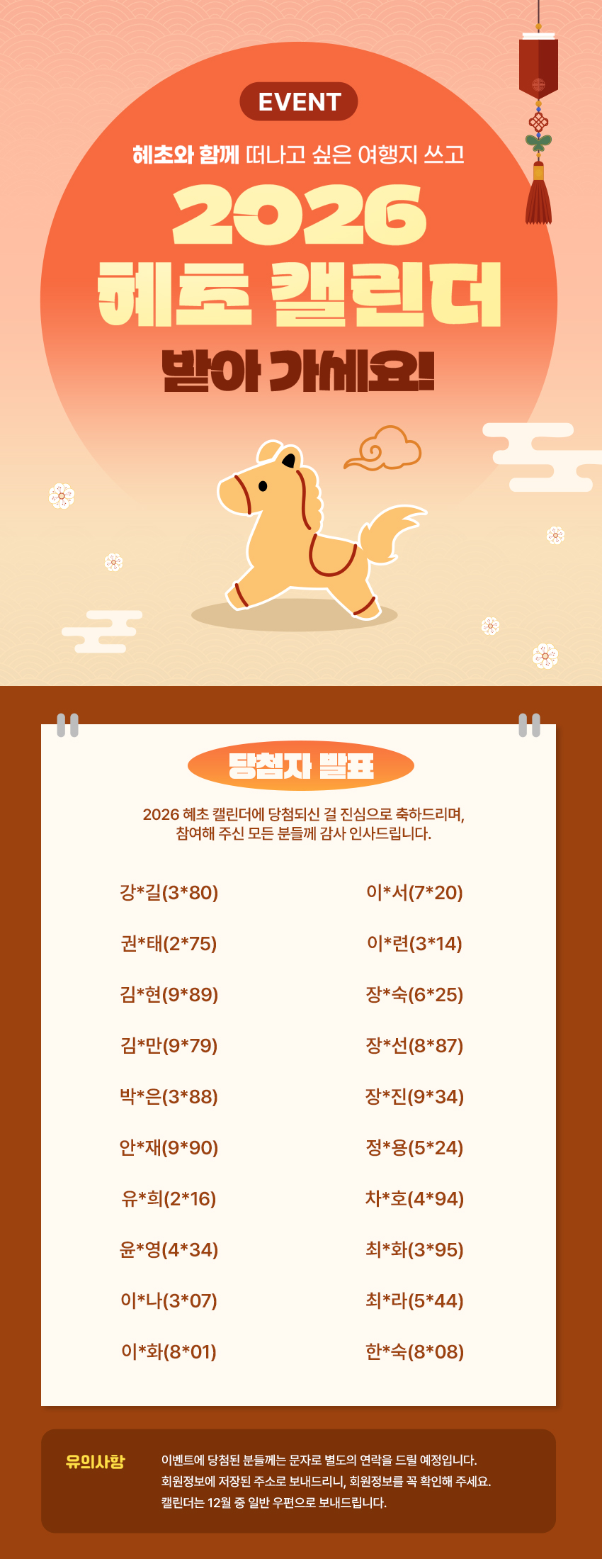 2026 혜초 캘린더 이벤트 당첨자 발표 공지