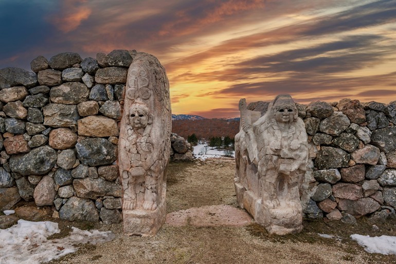 히타이트 제국의 옛 수도였던 하투샤는 오늘날 터키 북중부의 보아즈쾨이 근처에 위치한 고대 도시 유적지입니다. 도시 전체는 약 8?km 길이의 성벽으로 둘러싸여 있었고, 상·하 도시 구조로 나뉘었으며 수백 개의 탑과 성문들이 있었던 대규모 요새화된 도시였습니다. 스핑크스 문과 사자문 등이 남아 있으며, 이 문들은 당시 히타이트 건축과 방어 시스템의 정교함을 보여줍니다. 도시 안에는 왕궁, 사원, 종교·행정 중심지뿐 아니라 수십 개의 다른 사원과 주거지, 저장고, 물 저장 시설 등이 있었던 것으로 밝혀졌습니다. 또한 하투샤 유적에서 수만 점의 점토판 문서가 출토되었으며, 이를 통해 히타이트 제국의 언어·법률·국제관계 등 광범위한 문명 연구가 가능해졌습니다. 이 유적은 1986년 UNESCO 세계유산으로 지정되었으며, 당시 고대 근동 문명의 중심지였던 히타이트 문명의 위상을 보여주는 귀중한 증거입니다.