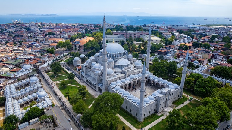 슐레이마니 모스크는 터키 이스탄불에 위치한 16세기 오스만 제국 전성기 시절 건축된 대표적인 이슬람 사원입니다. 술레이만 대제의 명령으로 건축되었으며, 건축가 미마르 시난이 설계한 걸작으로 평가받습니다. 모스크는 웅장한 돔과 두 개의 미나렛, 넓은 예배 공간을 갖추고 있어 당시 오스만 건축 기술의 정수를 보여줍니다. 내부에는 정교한 타일 장식과 아라베스크 문양이 어우러져 신성하고 화려한 분위기를 자아냅니다. 또한 모스크 단지 내에는 학교, 병원, 욕탕 등 다양한 사회 시설이 함께 조성되어 오스만 시대의 종교와 사회 구조를 보여줍니다.