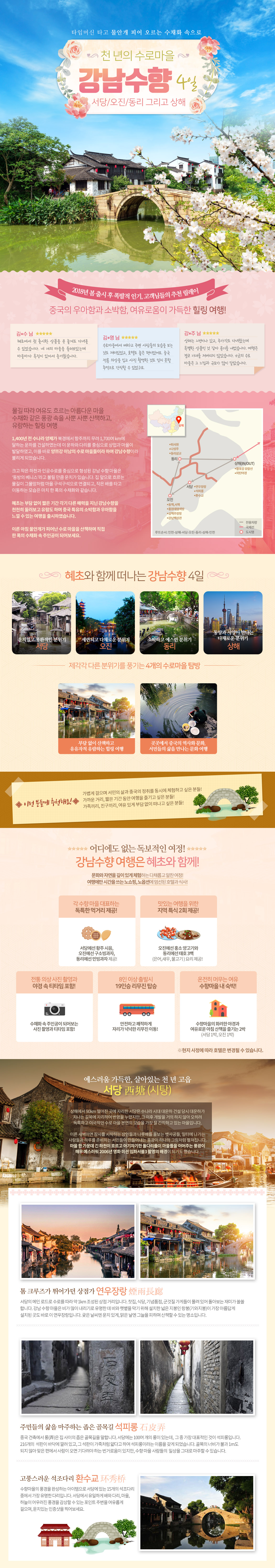 강남 수향 마을 중에서 옛 모습이 가장 잘 보존된 곳으로 청나라 관리 출신인 임란생이 관직에서 물러난 뒤 화가인 원룡에게 설계를 부탁하여 만든 곳입니다. 다시 관직으로 돌아가길 희망하는 마음을 건물 구석구석에 심어 놓았으며, 소박하고 아담한 풍광이 여행자의 마음을 펺안하게 만들어 줍니다. 2000년 유네스코 세계유산으로 등재될 만큼 문화 유산으로 가치가 높은 명소 입니다.