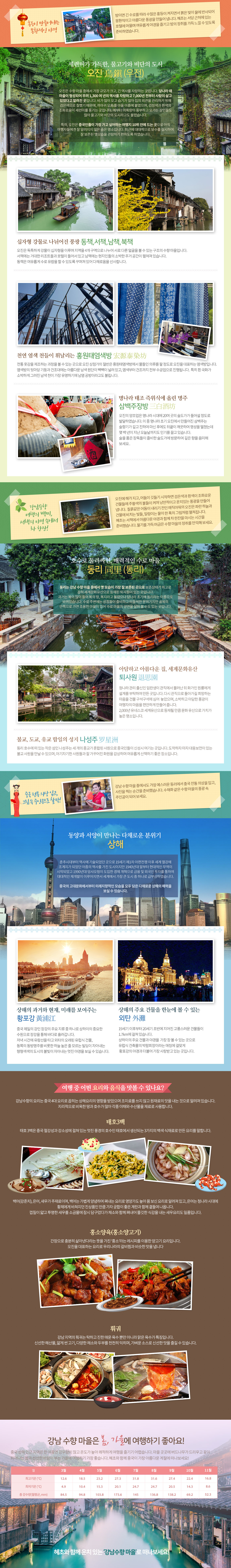 ▶1300년 역사를 지닌 경항 대운하와 맞닿은 검은 기와와 수상가옥이 인상적인 수향마을 오진