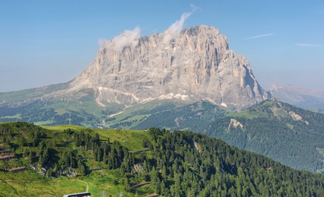 호텔에서 아침식사 후 돌로미테 중심 파쏘 포로도이로 이동 (약 40분 소요)