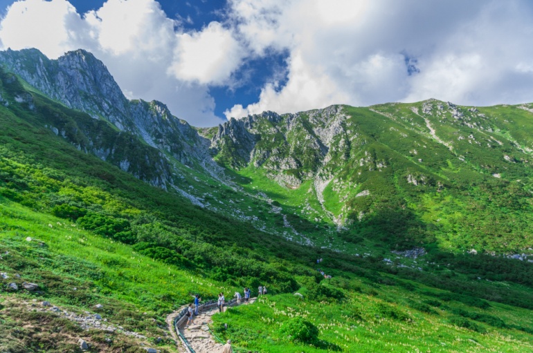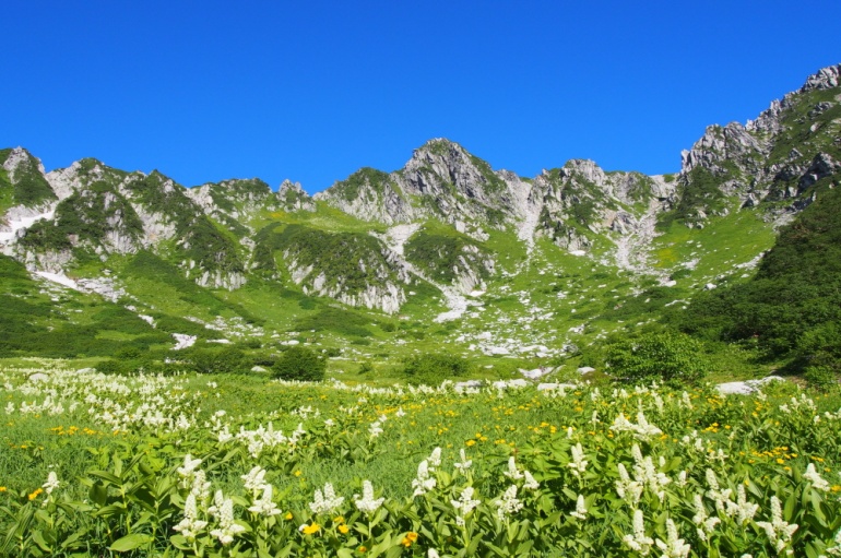중앙알프스에는 일본을 대표하는 센조지키카르, 노가이케카르 등의 카르가 있고 표고 3,000m의 바위 표면 바로 아래로 펼쳐지는 센조지키카르는 고산식물의 보고로 잘 알려져 있습니다. 센조지키카르 기슭에는 고마가다케[駒ヶ岳] 로프웨이 센조지키역이 있어 손쉽게 정상까지 올라갈 수 있고 로프웨이에서 내리면 눈 아래로 센조지키카르가 펼쳐지며 남알프스를 한눈에 바라볼 수 있습니다.