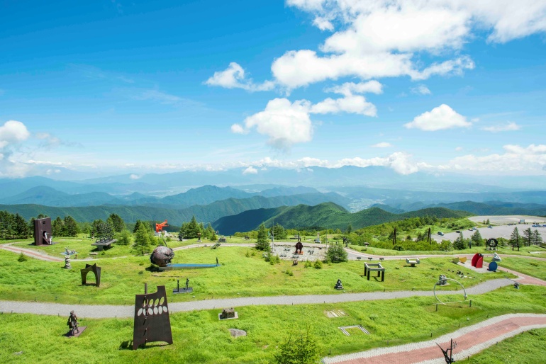 나가노현의 중앙부, 마츠모토시(松本市)와 우에다시(上田市), 나가와마치(長和町)에 걸쳐, 야츠가타케 고원(八ヶ岳信高原) 국정공원의 북서부에 위치하는 '우츠쿠시가하라 고원(美ヶ原高原)'. 표고 2,034m의 산 '오가토(王ヶ頭)'를 필두로 표고 2,000m부근에 펼쳐진 고원입니다. 인근에 위치한 '우츠쿠시가하라 고원 미술관'은 일본에서 가장 표고가 높은 야외 전시형 미술관으로 야외전시장에는 350여 점의 조각품을 전시하고 있습니다.