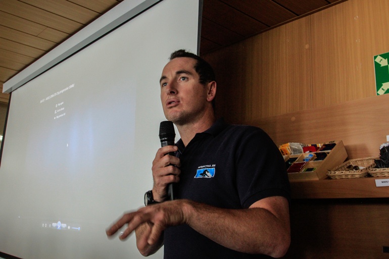 호텔에서 진행되는 남극 크루즈 브리핑을 들으며 남극 항해 관련 주요 사항과 필수 가이드라인 재점검