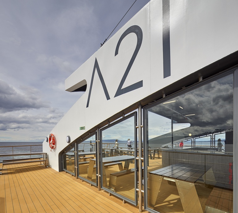 남극 크루즈 상품에서 탑승하는 크루즈로, 에어 크루즈 맞춤으로 건설되었으며 현대적인 최신 시설이 갖춰진 선박입니다. 마젤란 크루즈는 7가지 타입의 룸이 있으며 최대 100명의 인원을 수용할 수 있습니다. 모든 룸에는 테라스 시설이 갖춰져 있어 룸 안에서도 시시각각 변하는 남극의 풍경을 감상할 수 있으며, 각 룸에는 옷장, 개별 난방 시스템, 개인 화장실이 구비되어 있습니다. 크루즈는 총 4층 구조로, 야외 라운지, 프레젠테이션 룸, 레스토랑, 바(Bar), 도서관, 머드룸, 미팅룸, 체육관, 사우나, 의료시설 등이 탑승객의 편의를 위한 다양한 시설들이이 구비되어 있습니다.