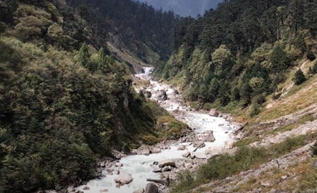 ▲ Zemu Chu 계곡을 거슬러 올라가며 작탕까지 트레킹을 진행합니다.