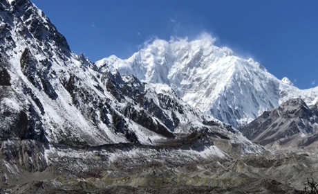 ▲ 그린레이크에 가까워지면서 '제무'빙하와 시니올추(6,888m)가 가까이서 조망됩니다.