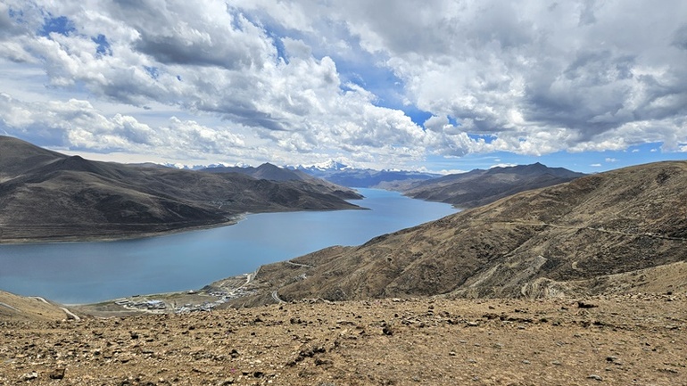 얌드록쵸 (Yamdrok Lake) 티벳의 3대 호수 (남쵸 호수, 마나사로바,얌드록쵸 호수)중 하나로써 짙은 비취 빛의 물 때문에 '푸른 보석'이라는 애칭을 가지고 있습니다. 산 위에 쌓였던 눈들이 녹으면서 형성된 호수로 동에서 서까지 130Km, 남에서 북까지 70Km길이 이며 이곳의 고도는 무려 4,482m에 달합니다. 굽이굽이 이어진 산자락을 따라 자리한 얌드록쵸를 바라보고 있노라면 몽환적인 느낌마저 듭니다. |