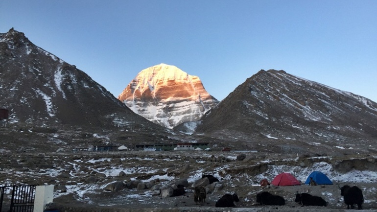 카일라스 코라(Kailash Kora) 눈 덮인 카일라스산은 티베트 불교와 힌두교에서 세상의 중심인 수미산으로 믿는 신성한 산입니다. 불교의 세계관에 의하면 카일라스산은 제석천(인드라)을 비롯한 신들이 사는 도리천이나 사천왕천이 있는 산입니다. 티벳의 전통종교인 본교에서도 카일라스 산을 신들이 사는 성지로 믿고 있습니다. 카일라스산에 도착하면 많은 순례자들이 카일라스 주위를 돌며 기도하는 모습을 볼 수 있습니다. 이를 "코라"라 하며, 티베트인들은 한 번의 코라(순례)는 이 생에서의 업을 소멸시킬 수 있고, 10번의 코라를 하면 500년간의 윤회 중에 지은 죄를 면할 수 있으며, 108번의 코라를 하면 해탈 또는 열반할 수 있다는 믿음을 가지고 있습니다. |