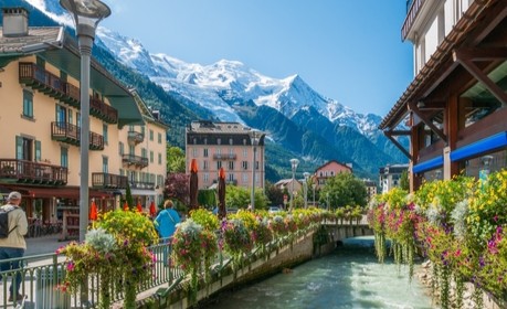 ▲ 랑덱스에서 몽블랑을 배경으로 기념사진을 찍은 뒤 트레킹을 시작합니다. 유럽 알프스의 최고봉답게, 몽블랑은 웅장하면서도 아름다운 자태를 자랑합니다.