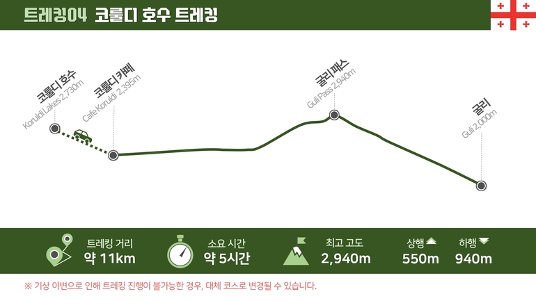 ▲ 코룰디 호수에 오르면 양쪽으로 코카서스 산맥의 절경이 펼쳐집니다.