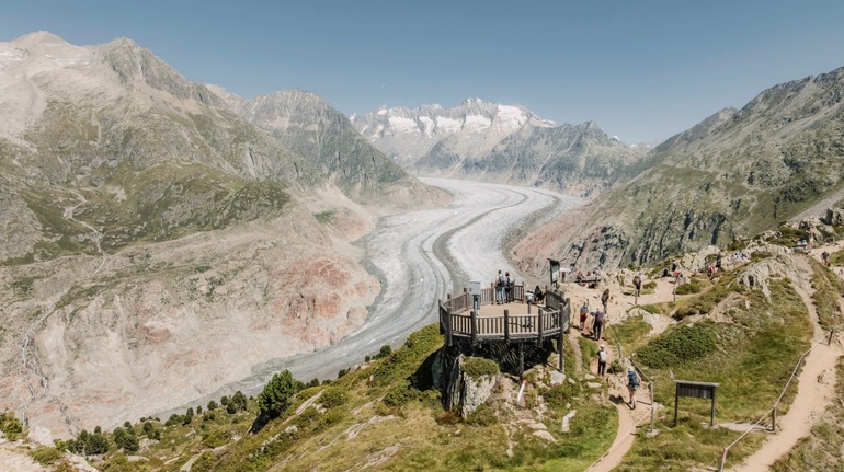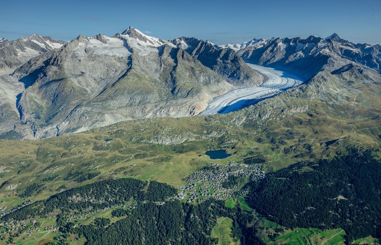 ▲ 무스플루 전망대에 오르면 알프스에서 가장 긴 알레치 빙하가 한 눈에 들어옵니다. (사진제공: 발레주 관광청)