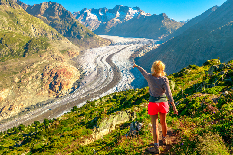 무스플루 전망대에서 알프스에서 가장 긴 알레치 빙하 관람