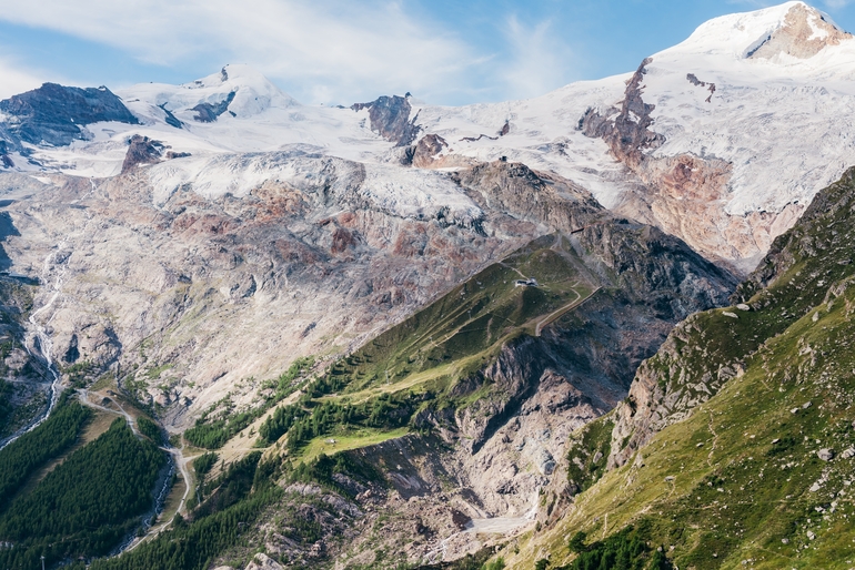 ▲ 해발 3,135m에 위치한 고르너그라트 전망대에서는 마테호른을 비롯한 해발 4,000m급 알프스의 고봉들과 장대한 고르너 빙하가 어우러진 파노라마를 감상할 수 있습니다.