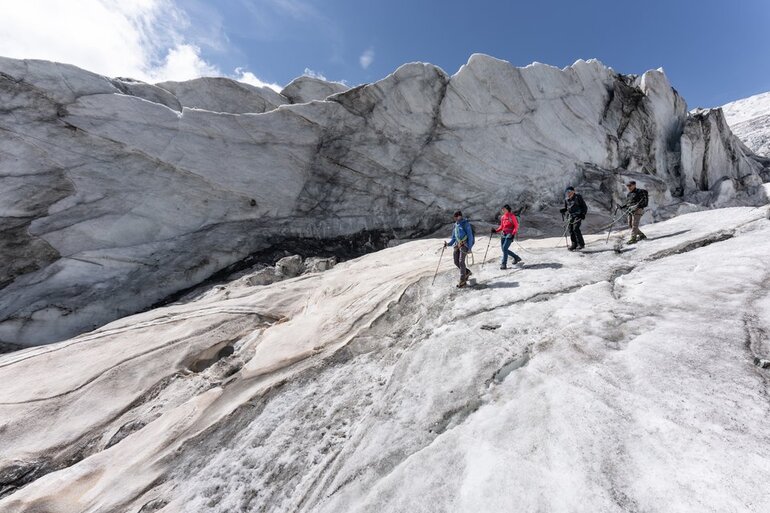 ▲ 사스페 빙하 트레킹은 빙하 전문 가이드와 함께 안전하게 진행됩니다. (사진제공: 발레주 관광청)