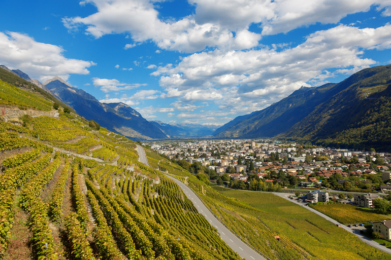 ▲ 스위스 론 계곡과 넓은 포도밭으로 둘러싸인 마흐티니에서 점심식사를 합니다.