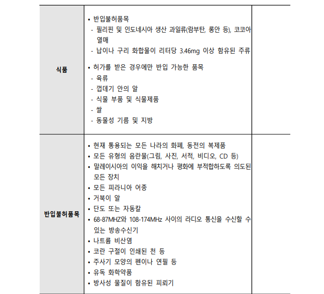 [말레이시아 여행자 통관정보 - 통관청] 2025.5 기준]