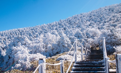 ▲ 한라산 성판악 탐방로 트레킹 중 바라볼 수 있는 설산